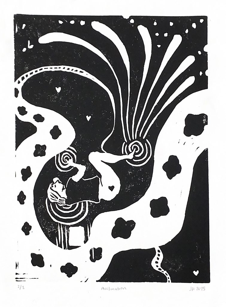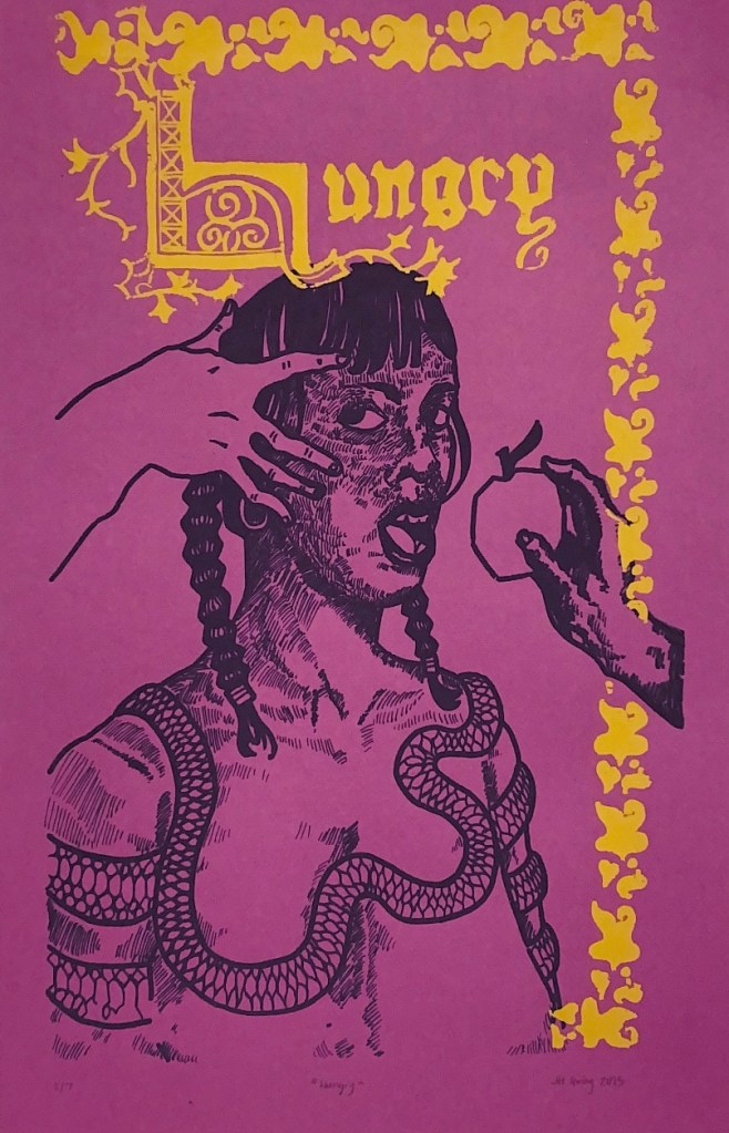Jess Huckel is an artist living in West Chester, PA. She is studying Studio Art and Digital Marketing at West Chester University. Huckel incorporates printmaking and mixed media methods into her work. She draws inspiration from religious symbolism, early internet culture, and personal memories. She has had her work exhibited at the Old Lockers Gallery in West Chester, PA. Her work has been published and presented in Daedalus Literary Magazine. She is the current Vice President of West Chester’s Illustration Club. She is the current Printmaking Intern at West Chester University.